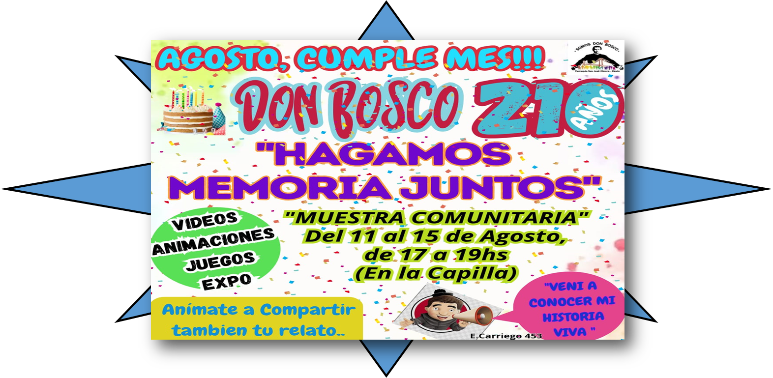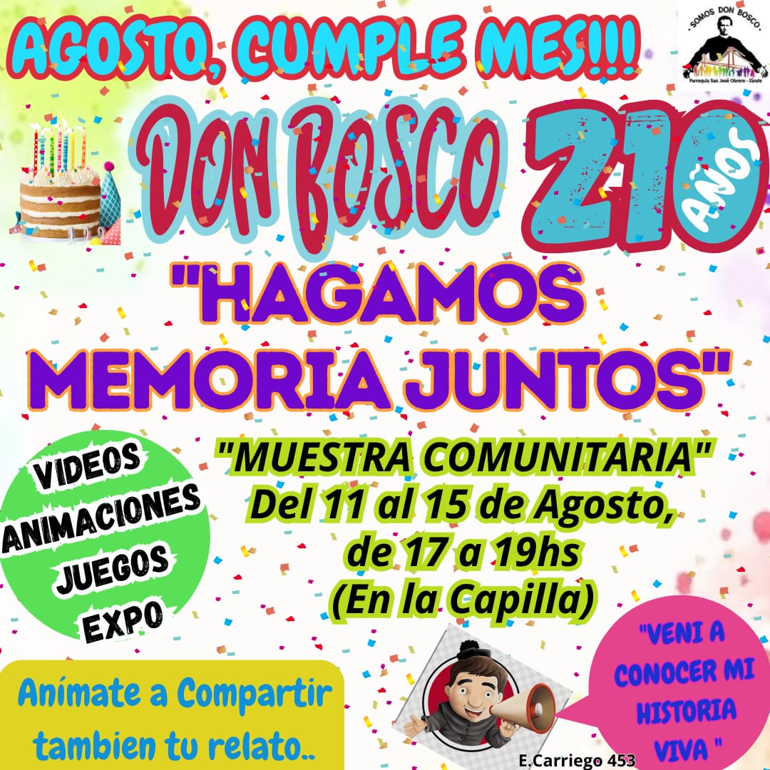 Del 11 al 15 de Agosto, la Comunidad Don Bosco se prepara para celebrar su 210 Cumple con esta actividad organizada por los diferentes sectores que participan activamente en la Obra.