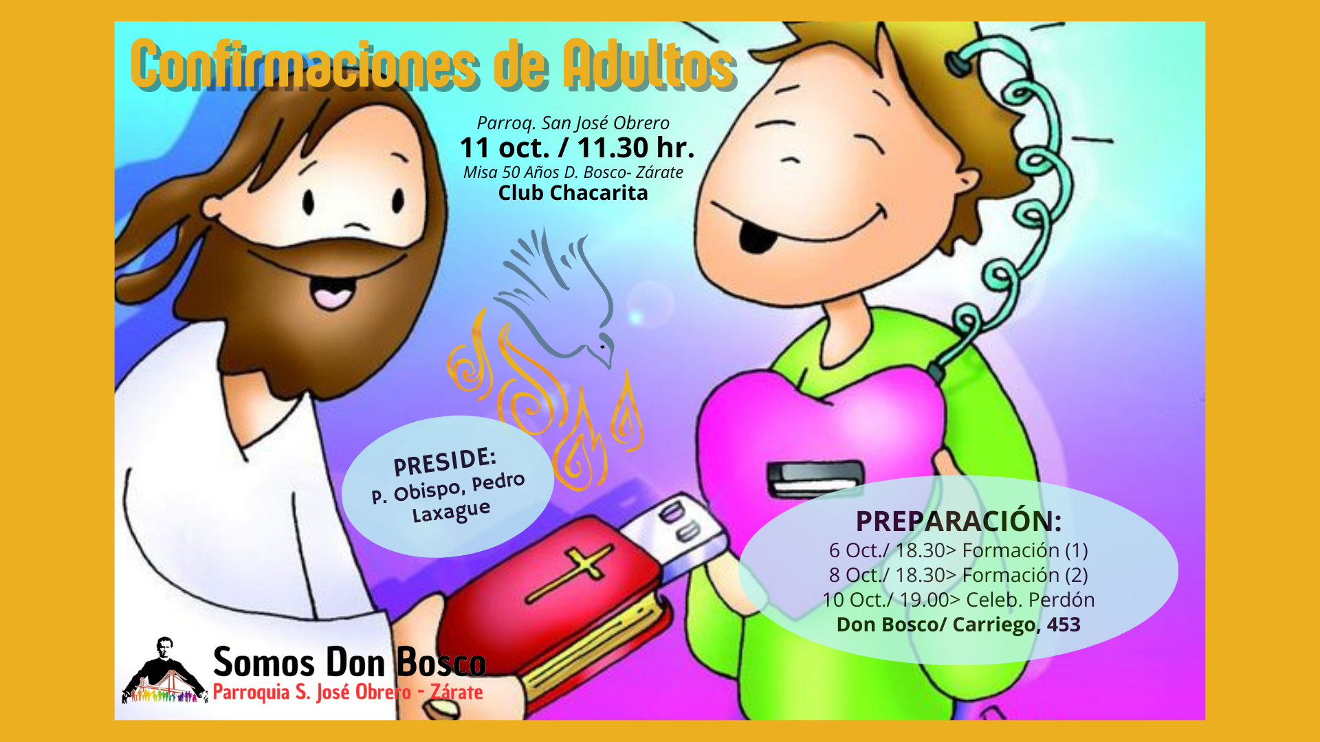 Para los Adultos (mayores de 18 años) se realizarán 3 encuentros en Octubre para prepararse a esta celebración. Todos los encuentros se harán en Don Bosco (E. Carriego, 453):