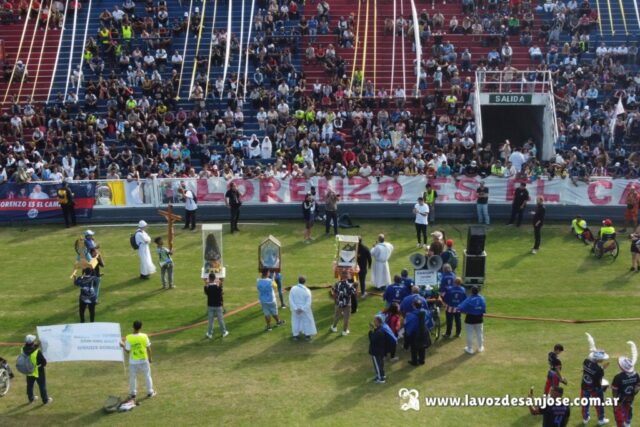La ante última parada fue en la cancha de su querido San Lorenzo que nos abrió las puertas y la cancha. Concluimos en la villa 1-11-14, Barrio P. RICHARDELLI, donde renovamos el Pacto y se concluyó con fiesta popular