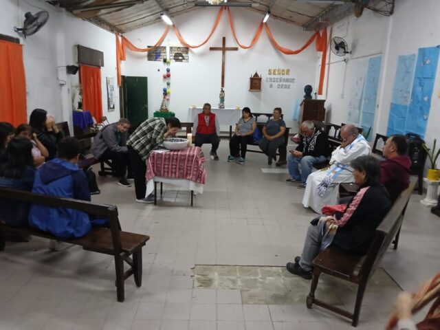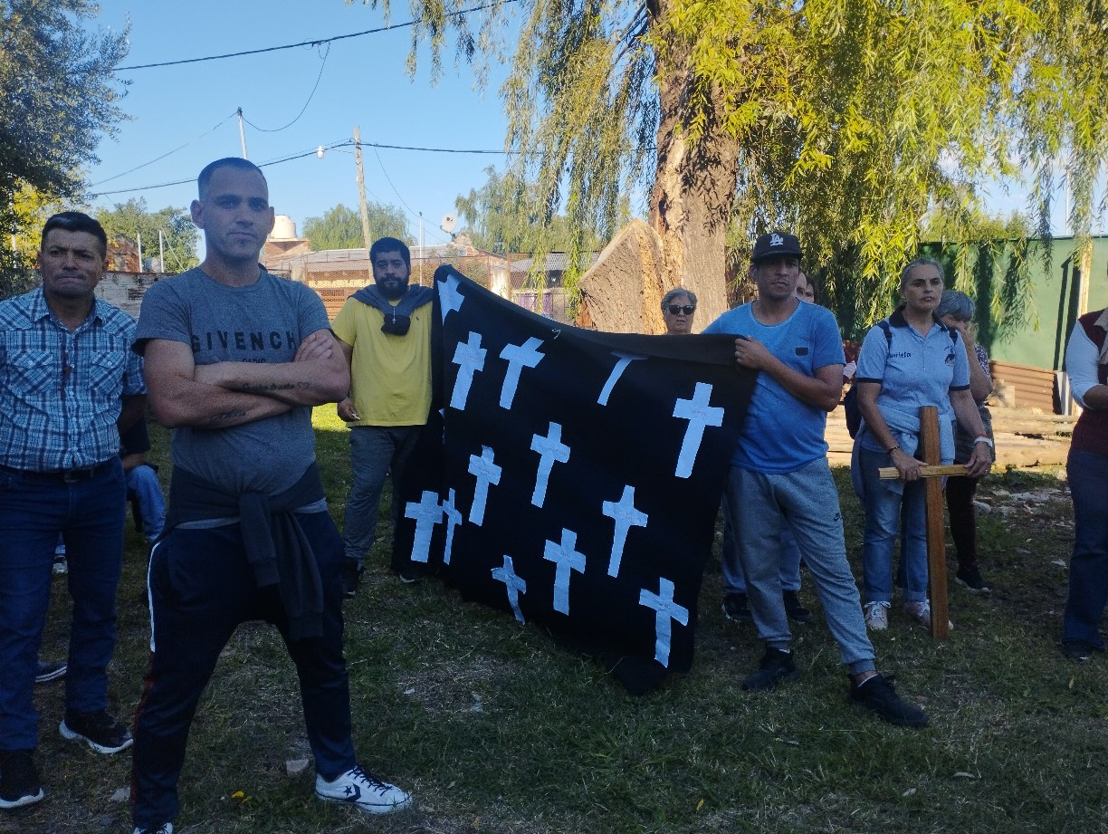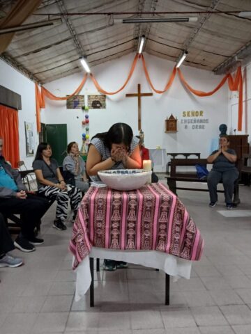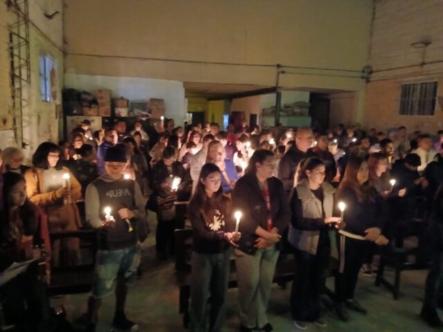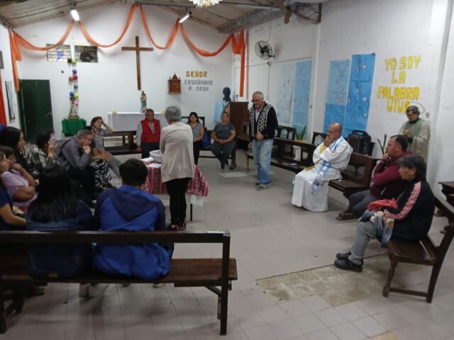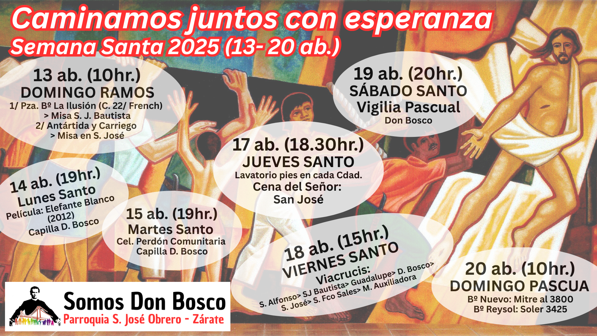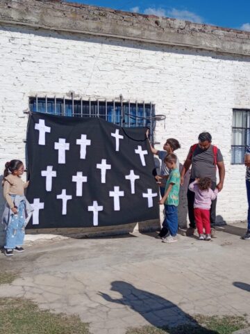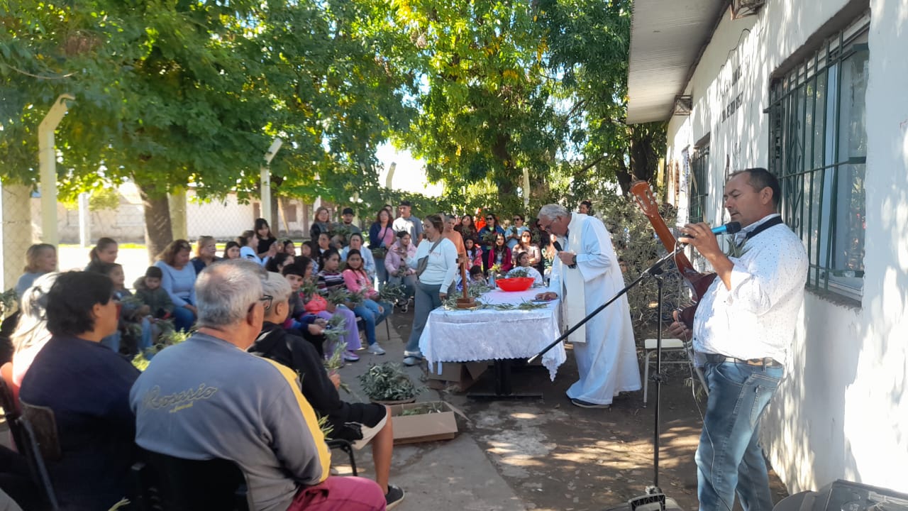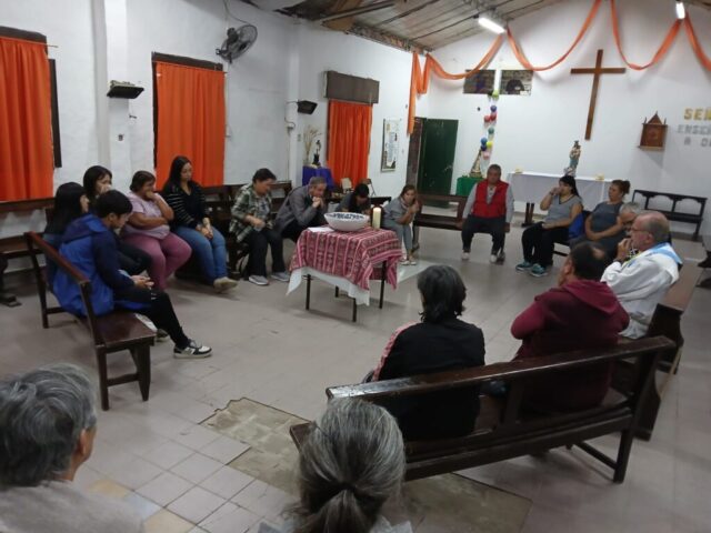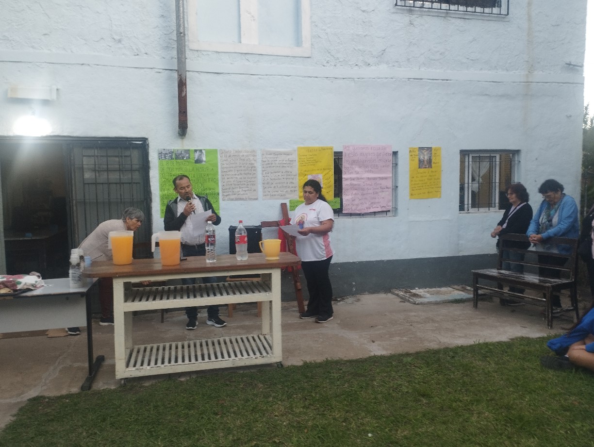 El viernes santo caminamos con Jesús con la cruz, acercándonos a algunas realidades de cruces que vivimos en este tiempo. Fuimos recorriendo las distintas capillas y comunidades acercándonos en cada lugar a una de estas Cruces: S. Alfonso> Jubilados, S. Juan Bautista> Despedidos y Desempleados, Guadalupe> Empobrecidos, Don Bosco> Infancia Maltratada, S. José> Jóvenes sin Futuro, S. Fco. Sales> Migrantes y Diferentes, María Auxiliadora> Mujeres. Nos comprometimos como comunidad a seguir bajando de la Cruz a nuestros hermanos y hermanas oprimidos por un sistema injusto e inhumano y así caminar a la Pascua de Jesús y nuestra pascua.