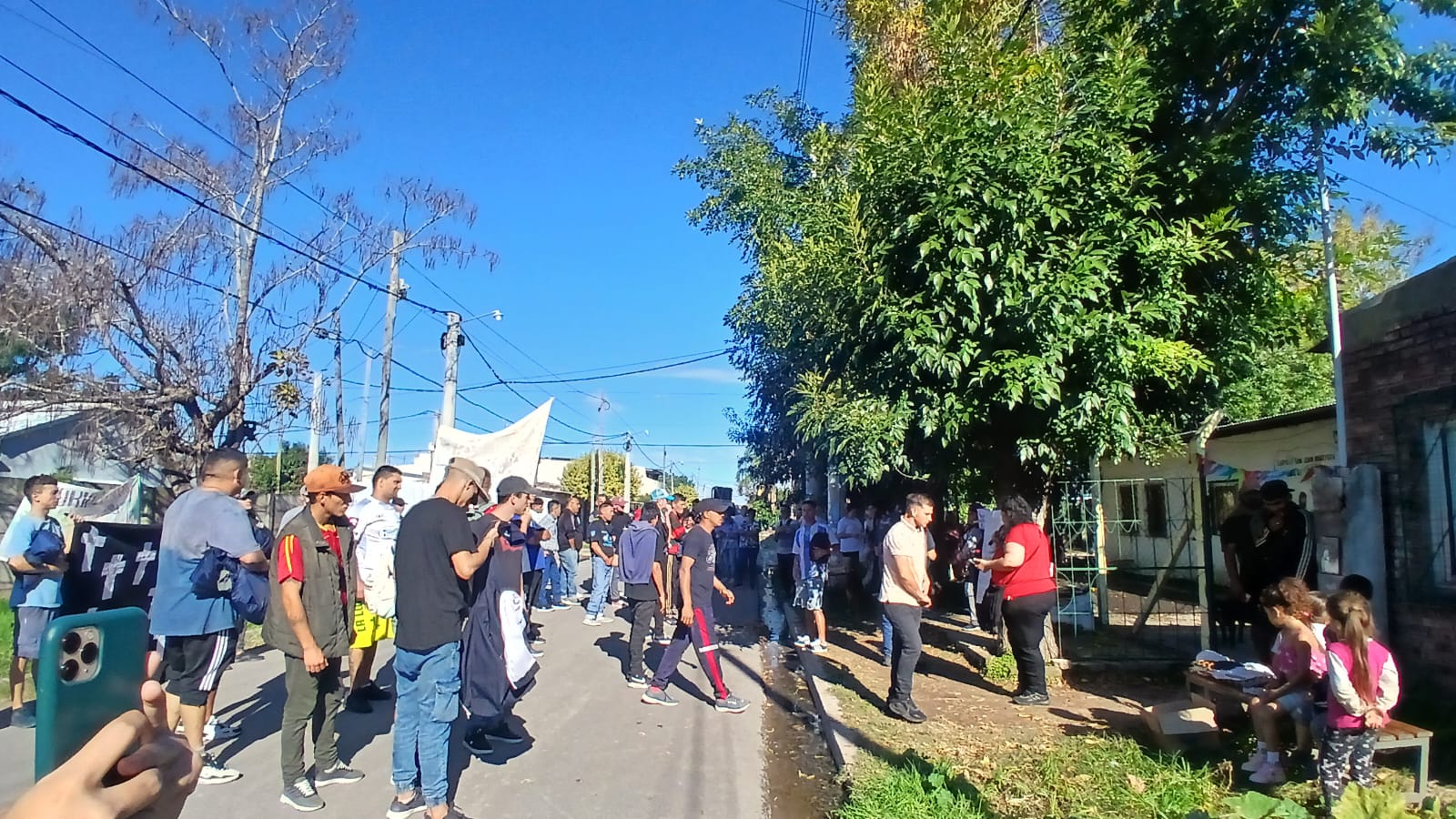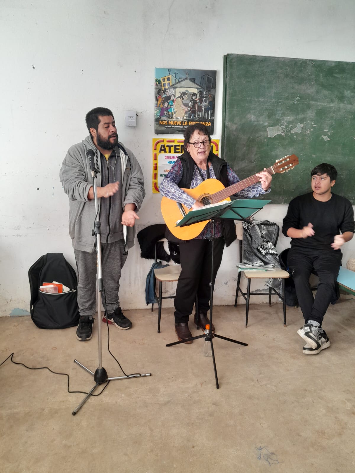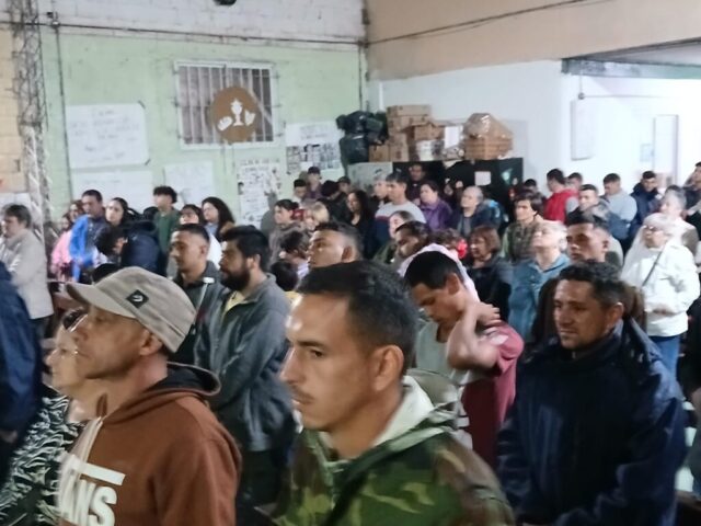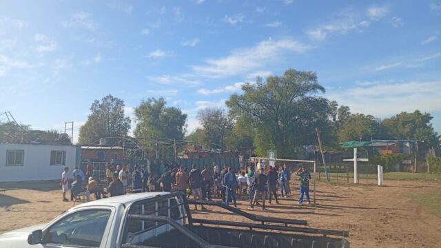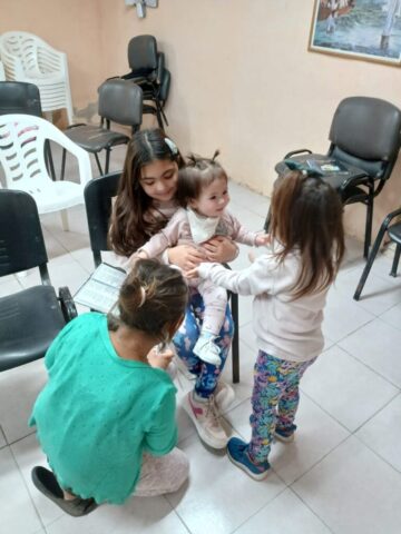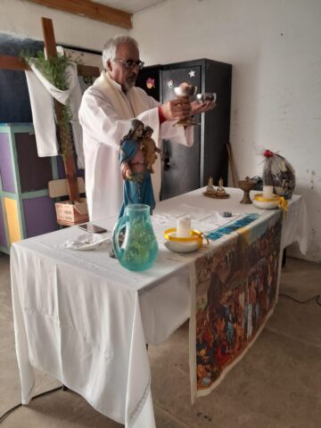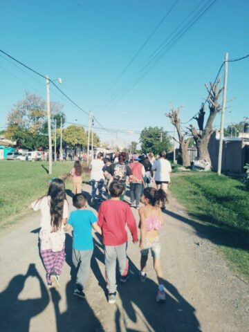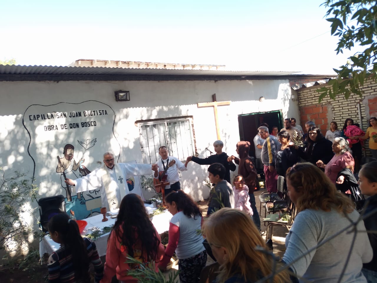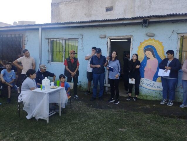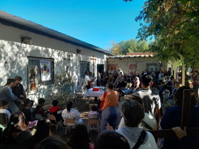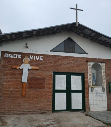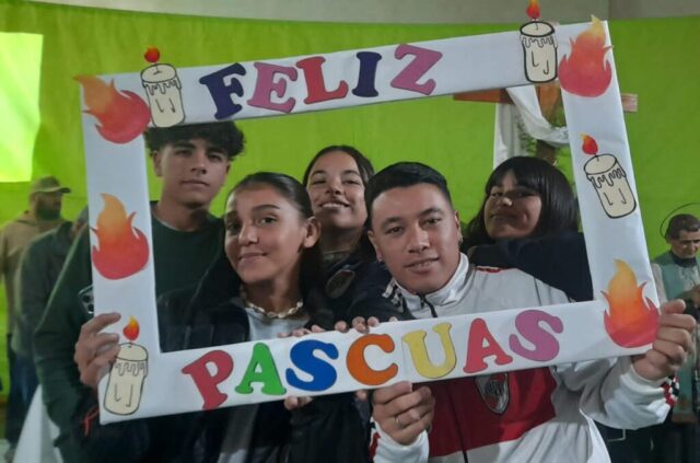 En la mañana de Pascua, como estaba en el programa nos desplazamos todas las comunidades con este Anuncio y Buena Noticia a 2 lugares fronterizos de nuestro territorio donde está la presencia de Don Bosco en sendas Casas (Hogares de Cristo): en el barrio Reysol, la casa Mamá Margarita y en el Barrio Nuevo, Nuestra Sra. Virgen de Luján.