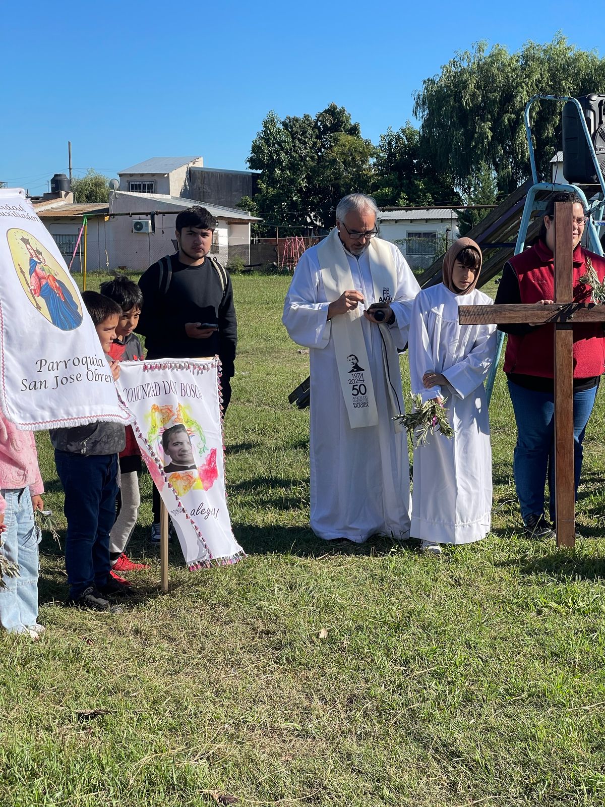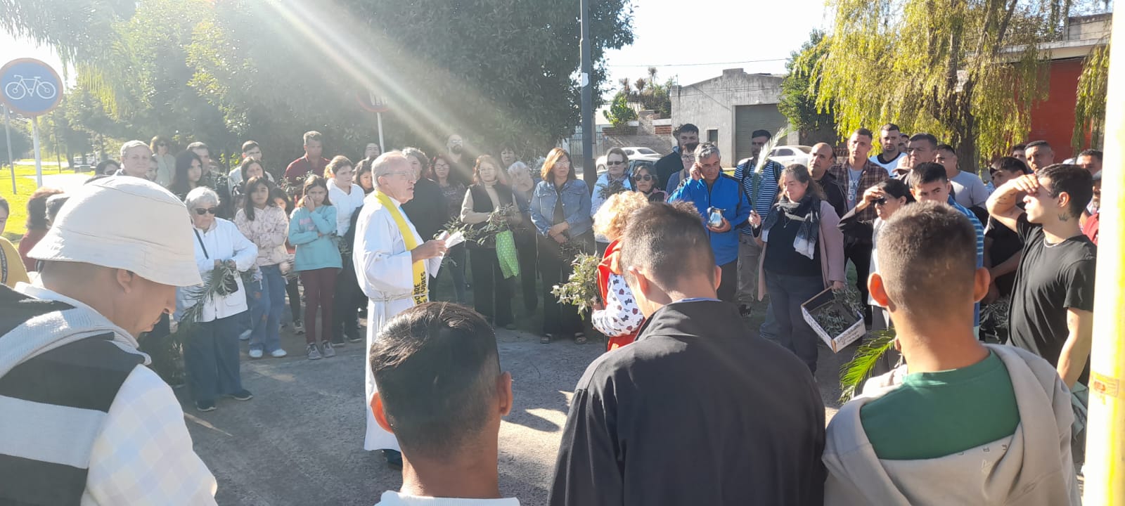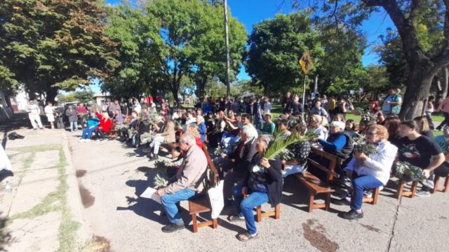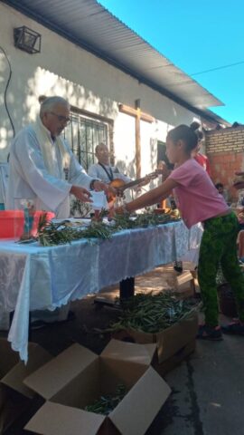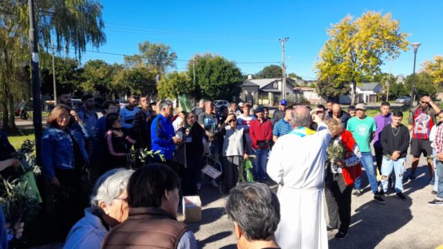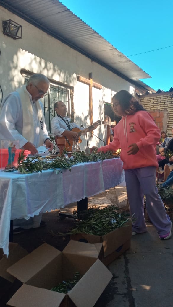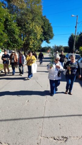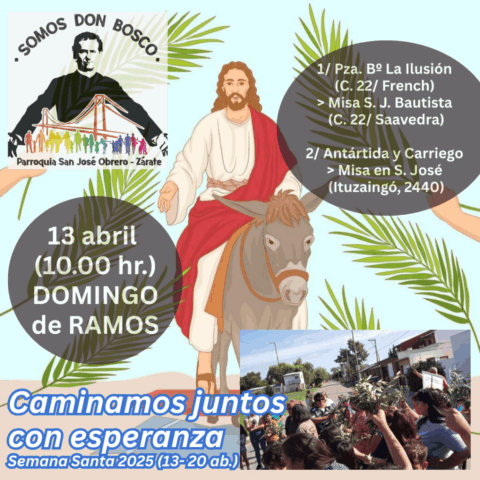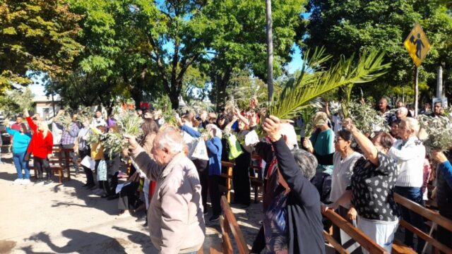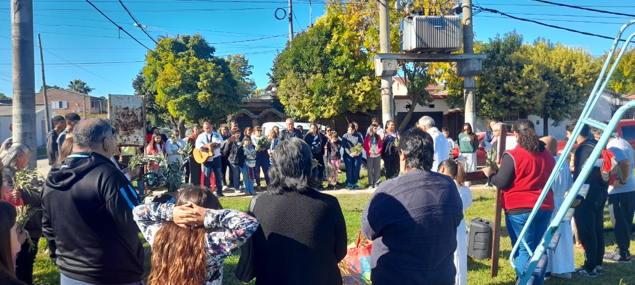 Primero en la semana previa cada comunidad fue preparando con los niños de catequesis y los jóvenes los ramos para ofrecer y bendecir en el domingo. Pueden verse algunas imágenes. El domingo 13 abril, a las 10 de la mañana celebramos la Misa y bendición de Ramos en 2 lugares simultáneamente: Plaza de la Ilusión y yendo después a la capilla S. Juan Bautista; a la vez en el cruce Carriego/ Antártida y yendo a S. José Obrero en s. Jacinto. La procesión con los Ramos nos dejó imágenes muy lindas de una hermosa mañana de otoño y entre ambas celebraciones se convocaron más de 500 personas.