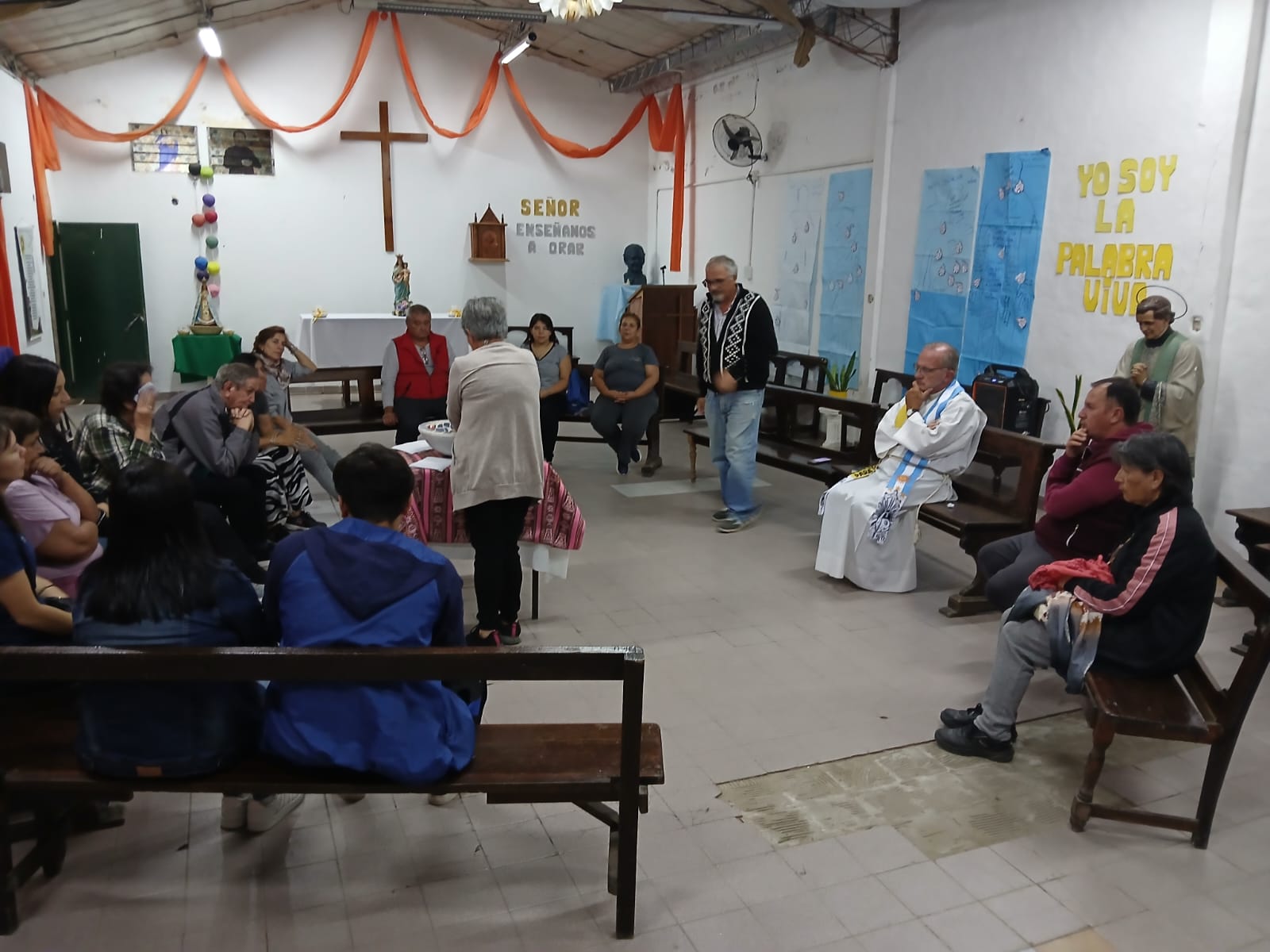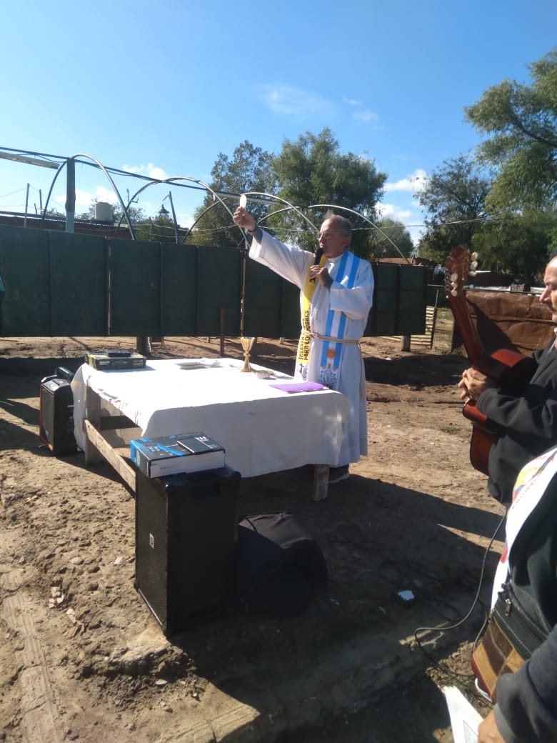 Luego se continuó con la liturgia de la Palabra en la que escuchamos cómo Dios hizo un pacto de Amor con la humanidad desde sus orígenes y que llega hasta nuestra historia y hasta nosotros y por el cual recibimos la Vida. Renovamos este Pacto de amistad y nuestro bautismo, con las promesas bautismales y fuimos bendecidos con su Agua de Vida. Para terminar con el resto de la Eucaristía y compartir el Pan que nos alimenta y ayuda a vivir siempre como resucitados y nos compromete a anunciar esta alegría a nuestros vecinos.