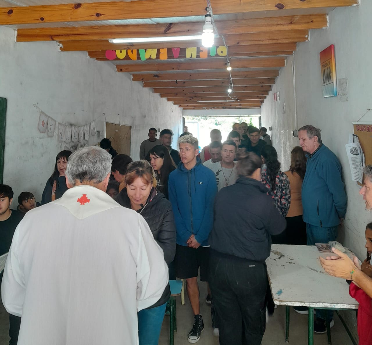 Según nos habíamos propuesto en comunidad, todos los días de la semana había algún evento especial en el que participar. El lunes fue el día elegido para pasar una película de nuestro cine argentino que nos pudiera ayudar a meditar el mensaje que vivimos en este tiempo tan especial. En la capilla Don Bosco a las 19 hr. se pasó «Elefante Blanco» (2012) del dir. Pablo Trapero que describe el compromiso cristiano de de la Iglesia en las Villas en la crisis del 2001.