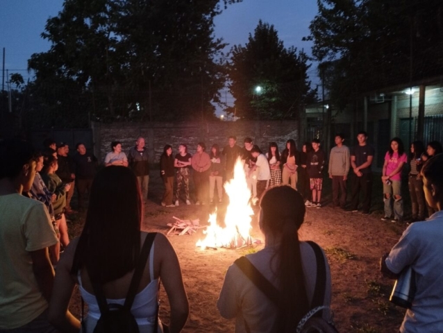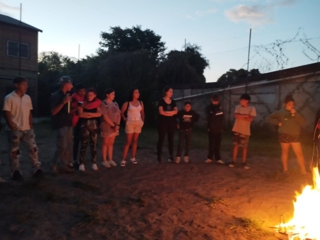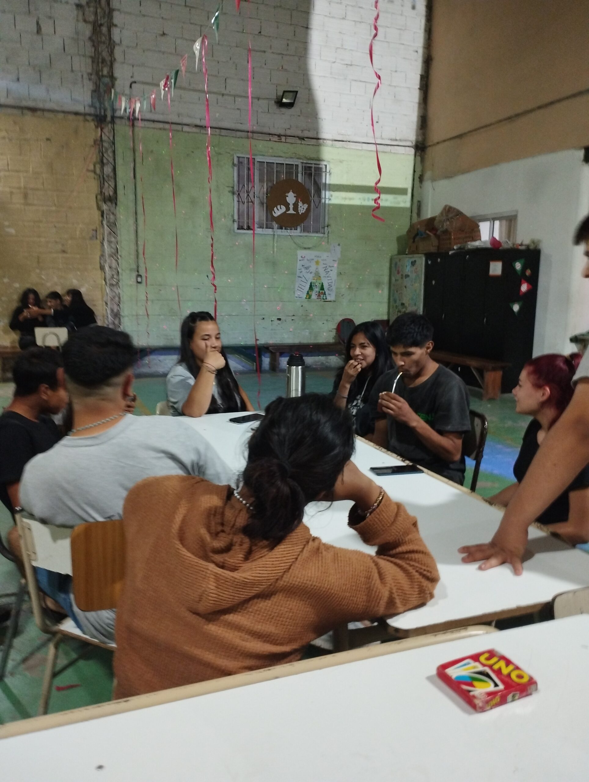 Comenzamos el festejo con una breve celebración religiosa del Nacimiento de Jesús con el encendido de un fogón en el patio para esperar la llegada del Salvador. Después hubo posibilidad de juegos y bailes de manera libre y acompañada. Y también teníamos una piñata con regalos y presentes que nos trae el Niño Dios. Cada uno de los participantes pudo recibir varios stiker con un motivo navideño. Y para terminar no podía faltar contar el cumpleaños feliz y compartir la sabrosa torta que nos trae Jesús. Este festejo quiere ser un sencillo gesto de agradecimiento a los jóvenes por todo el trabajo y tiempo voluntario que ofrecen a nuestros nenes a lo largo de todo el año, semana a semana. Muchas gracias, queridos jóvenes. Que el Niño de Belén se lo pague con un crecimiento como personas de bien.