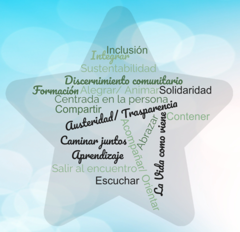 Así comenzamos por una dinámica con las palabras claves que nos definen en nuestra vocación y compromiso personal y que definen también cada uno de estos núcleos. Cada uno de los participantes elegimos 3 palabras que nos definen en este momento y luego pudimos compartir los motivos de nuestra elección con otros en grupos mixtos y aleatorios. En el siguiente momento, los representantes de estos núcleos pastorales en el Consejo de Obra nos presentaron los Marcos Teóricos que definen cada uno. Esto se pudo hacer por medio de nuestra Nueva WEB que estrenamos para este momento y que esperamos sirva para unirnos más como Comunidad grande y para confirmarnos y cohesionarnos en el Proyecto y Misión que desarrollamos.