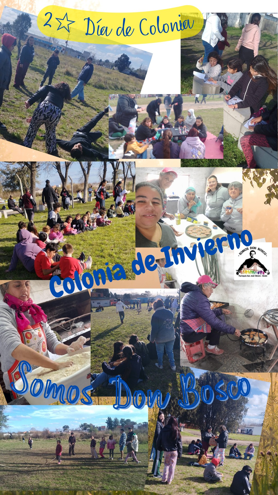 El lunes 28 se dio inicio a la Colonia de Invierno de la Obra de Don Bosco en el Club Chacarita, con un día soleado. Las distintas categorías (6 a 8años, 9 a 11 años, 12-13 años y más 14 años) disfrutaron de juegos, manualidades, deportes, música y una rica merienda compartida para todos los presentes. Se desarrolla a lo largo de esta semana, de 14a17hs en el Club Chacarita, (si el clima nos sigue acompañando).