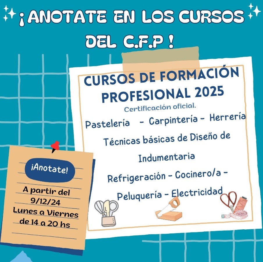 De lunes a viernes de 15 a 19hs los esperamos en el CFP para anotarse en los cursos para el año 2025.