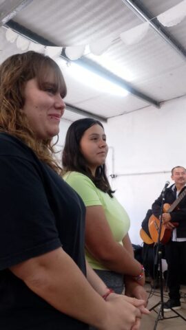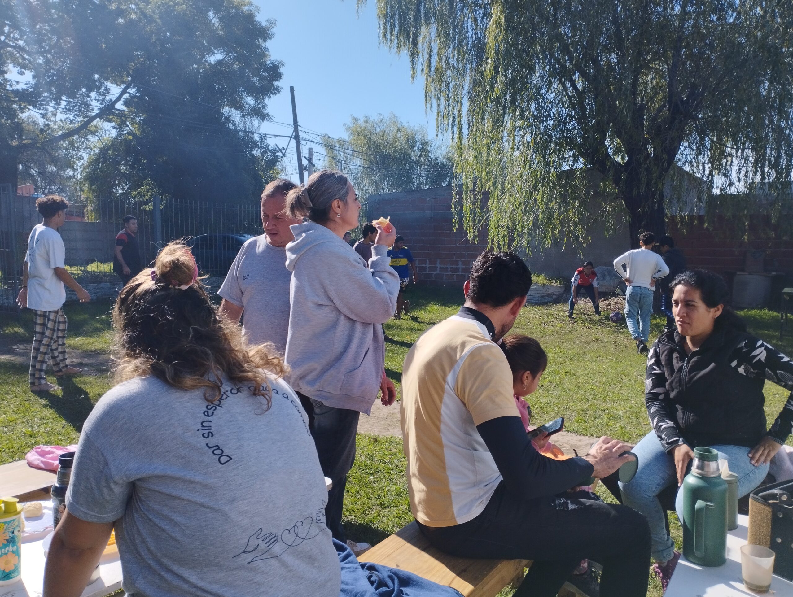 Casi un centenar de personas de todas las comunidades de la parroquia nos juntamos luego para un almuerzo comunitario a base de choripán y para el disfrute de mate, música, karaoke, danza, etc. También los pequeños y los adolescentes pudieron jugar a la pelota…