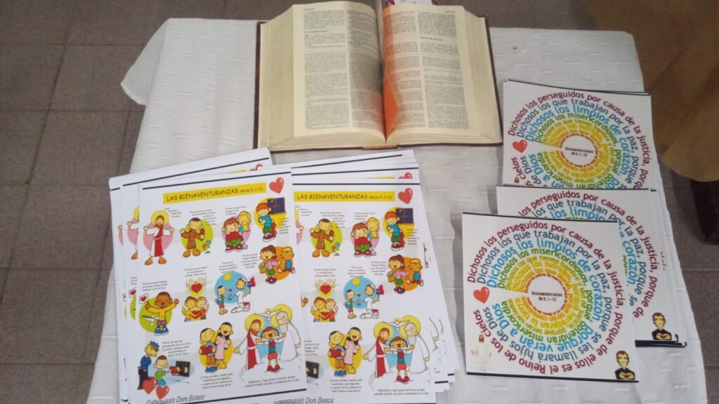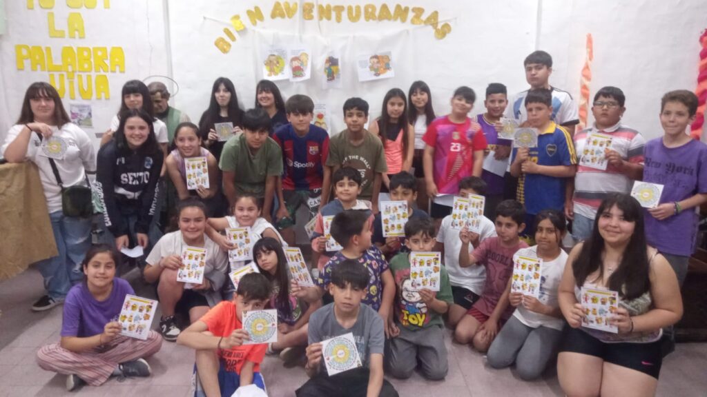 El pasado 18 de octubre se realizó un Encuentro Compartido con las niñas y niños de 1er año y 2do año de Catequesis, el Grupo Prejuvenil «Un Puente a la Confirmación», y los Adolescentes que se encuentran preparándose para recibir los Sacramentos de la Comunión y Confirmación, en donde conocieron Las Promesas que Jesús nos dejó, Las Bienaventuranzas.