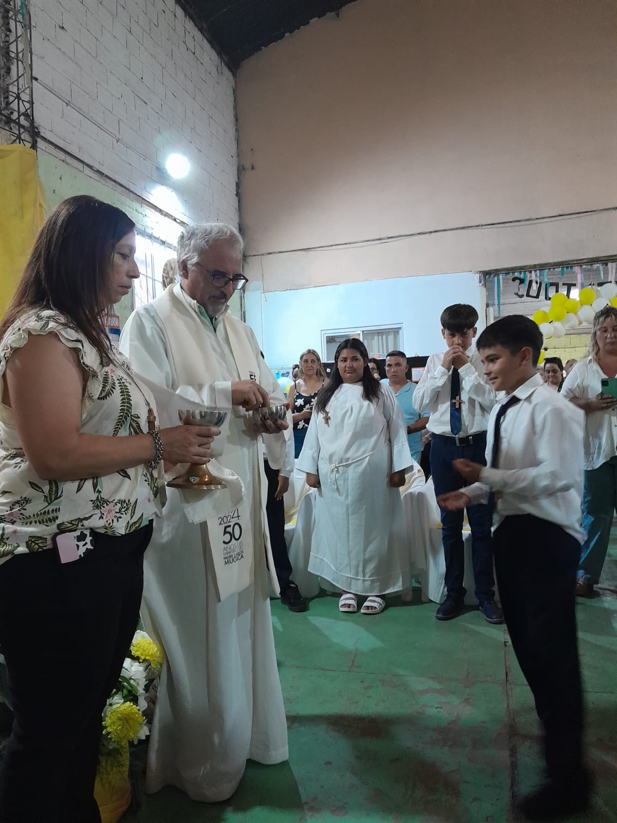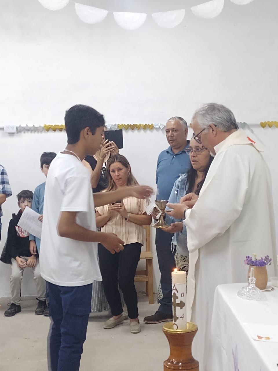 Tenemos que agradecer a todas las Catequistas que en los últimos 2 años y semana a semana se comprometieron a ofrecer un espacio de iniciación cristiana para estos pibes y para sus familias, pues en nuestra parroquia seguimos la modalidad de catequesis familiar. Todos en la Comunidad debemos comprometernos para tener siempre la puerta abierta y que no se quede en un gesto aislado en nuestra vida, sino que a partir de ahora estos pibes y sus familias sientan nuestro espacio, como su hogar, nuestra familia como su familia.