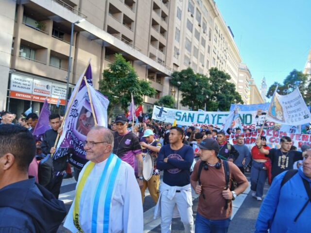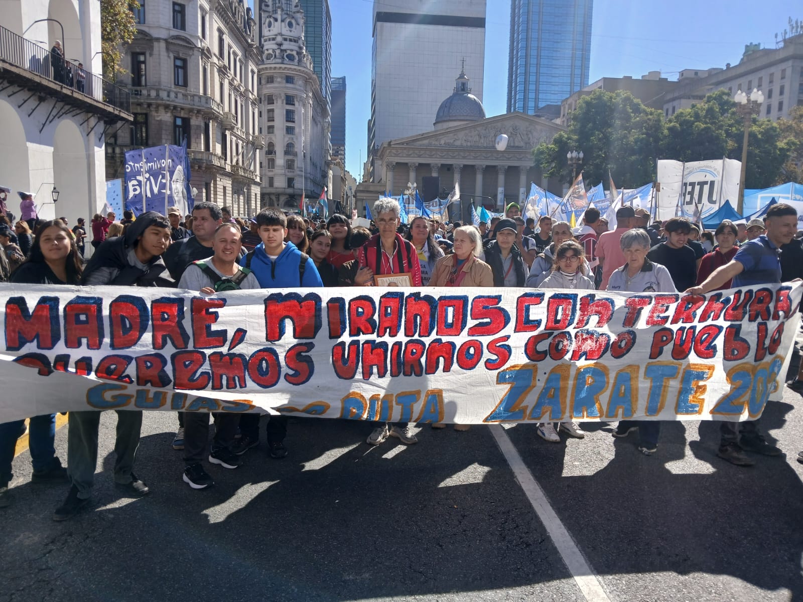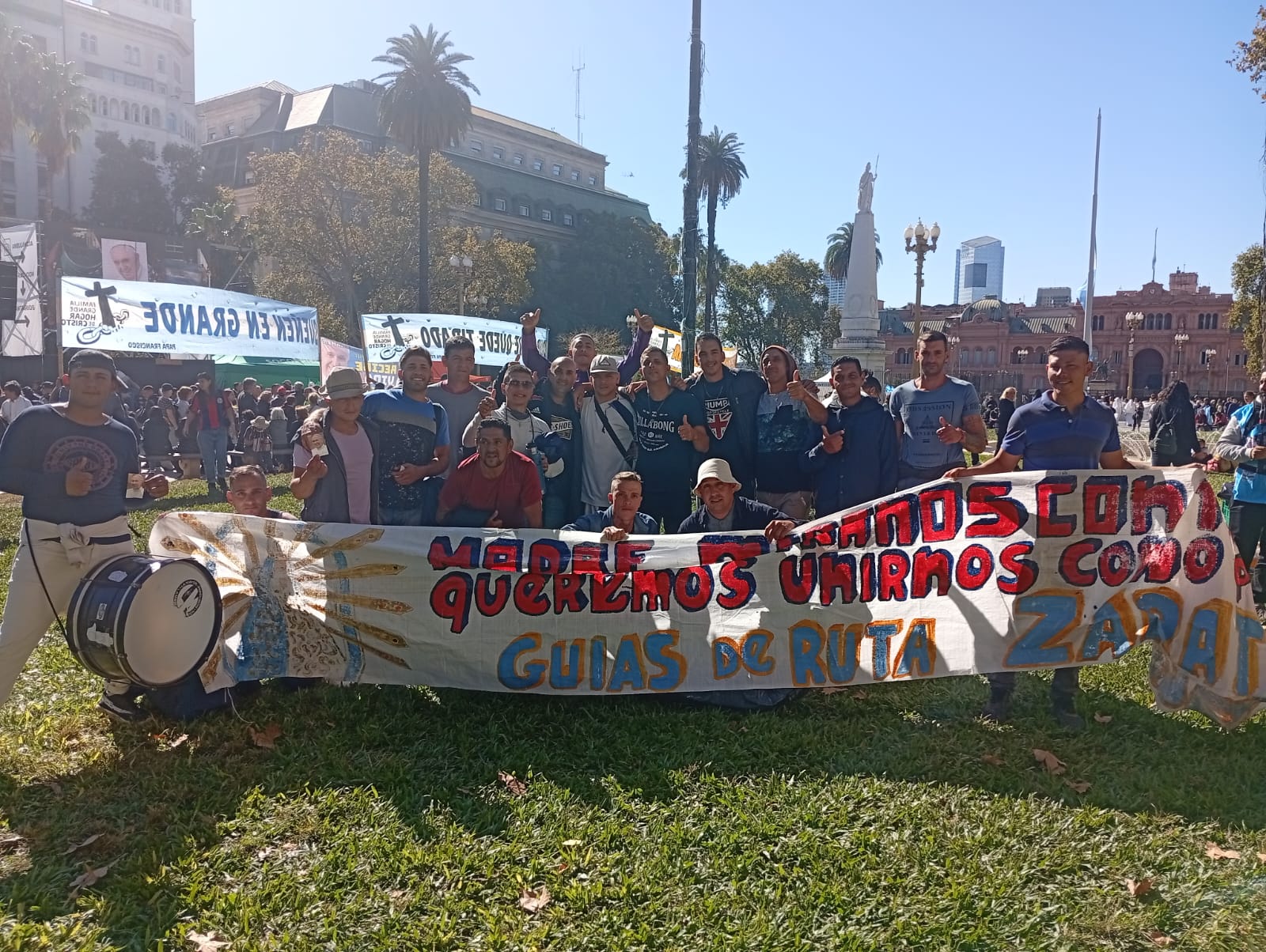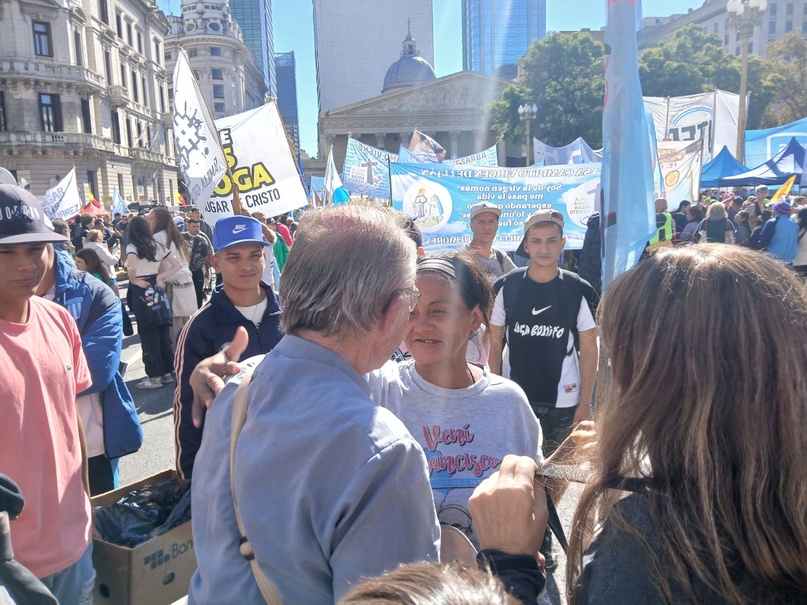 - Parada 1. En la Plaza Mayo la llamada Mesa Compartida y se recordó el mensaje de Francisco, «En la Iglesia hay lugar para TODOS, TODOS, TODOS».