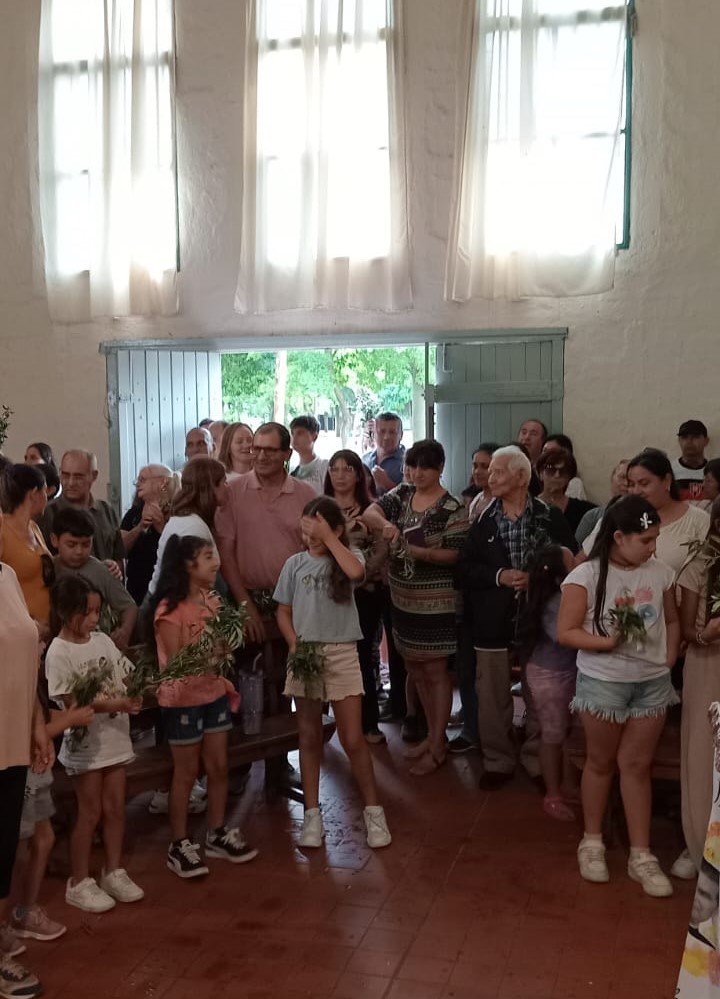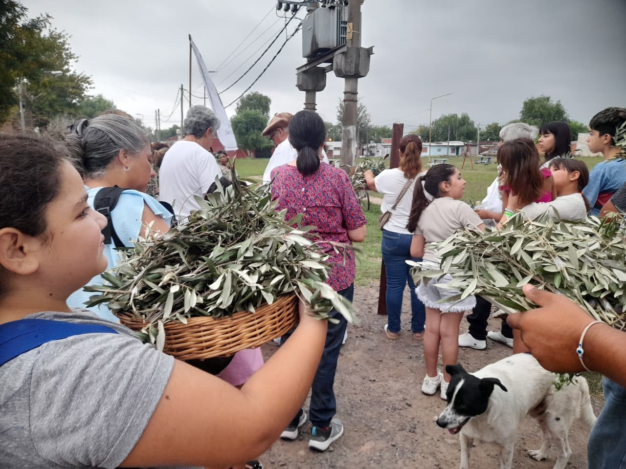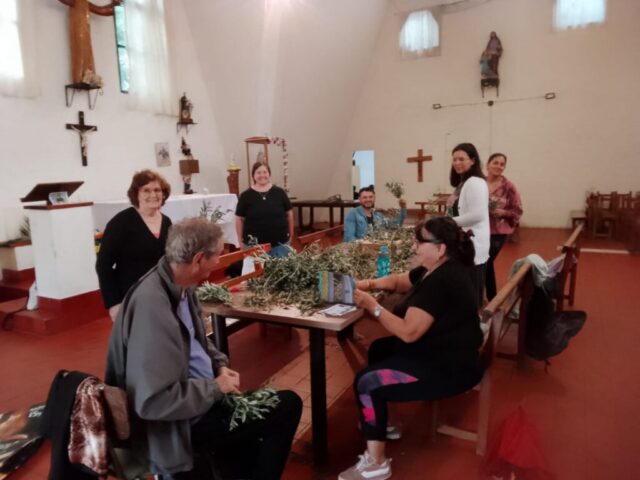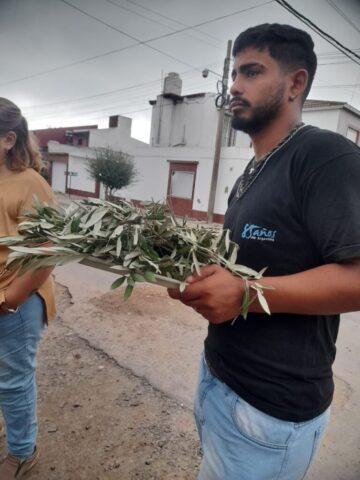 En nuestra Comunidad comenzamos la preparación en los días anteriores con la preparación de los Ramos de olivo en cada una de las comunidades. En ello se implicaron los niños/as de Catequesis Familiar que comenzaron ya a juntarse por este año. Se realizaron 2 celebraciones simultáneas a las 9.30: 1/ en Plaza de la Ilusión y terminando en la Capilla Ntra. Sra de Guadalupe y 2/ comenzando la procesión en Antártida y Carriego y terminando en S. José Obrero, la sede parroquial. En ambas celebraciones tuvimos que terminar dentro del templo, por las condiciones climatológicas del día.