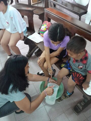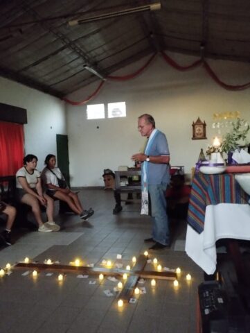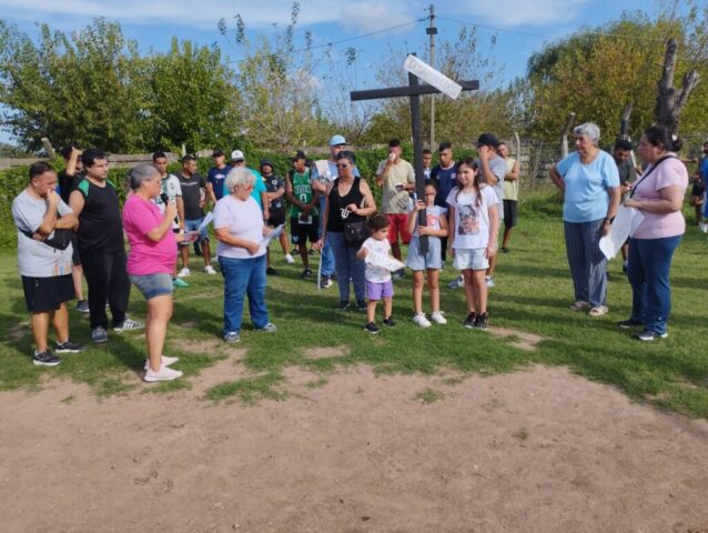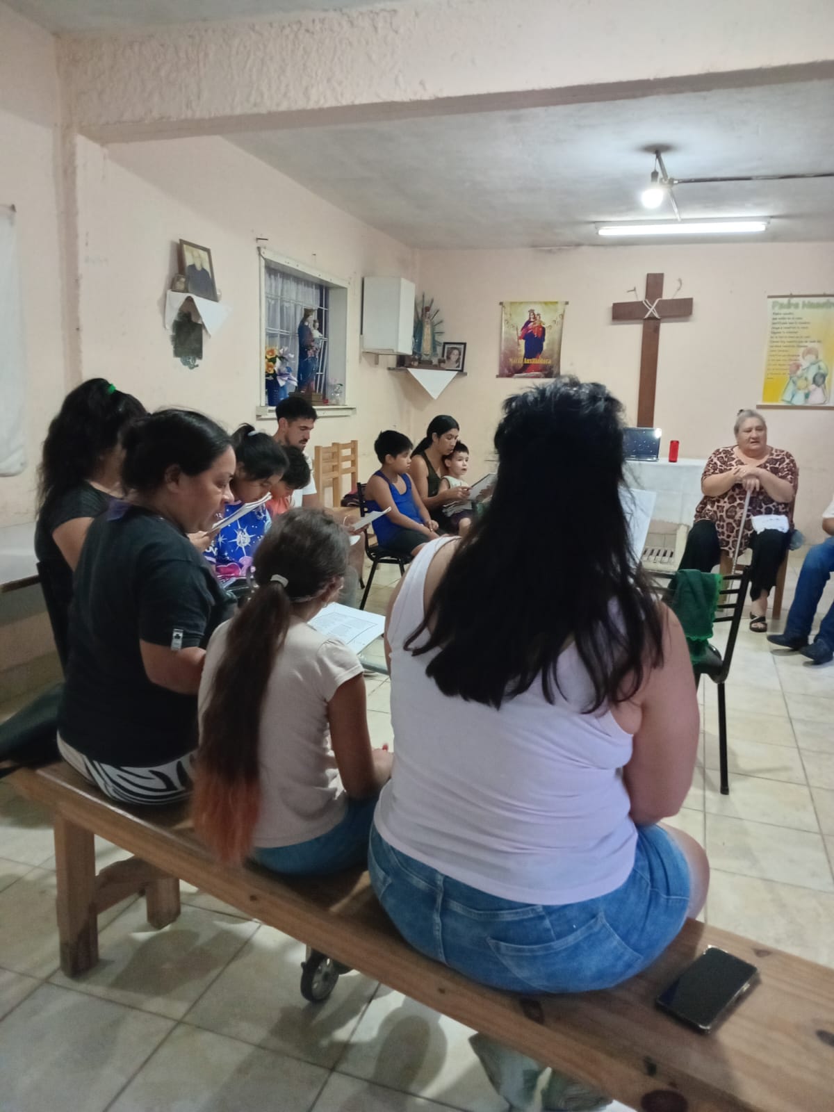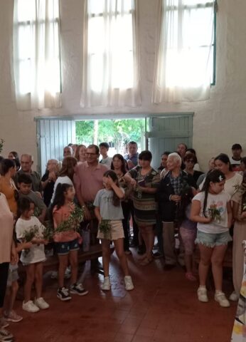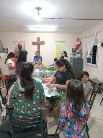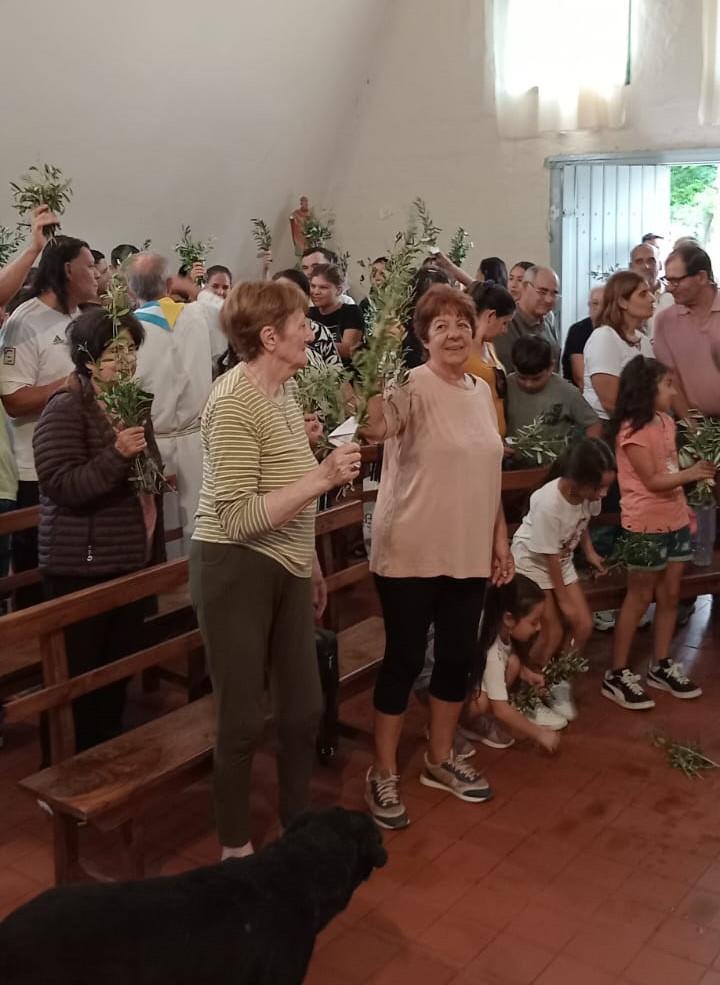 Previamente el día anterior estas comunidades hicieron sendas misiones por dichos asentamientos invitando a las familias a la Misa de Pascua y también a los niños/as para poder saborear unos maravillosos huevos de chocolate. También nos queda señalar que a la jornada siguiente de Domingo de Pascua (la pascueta) con la presencia del alumnado y toda la comunidad educativa del centro FP P. Mario Leonfanti, se realizó una celebración de pascua entorno al agua y nuestro compromiso de bautizados, porque todos somos DISCÍPULOS Y MISONEROS.