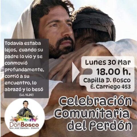 En esta fecha, que está libre de otras celebraciones habíamos programado una Celebración comunitaria del Perdón/ reconciliación que se realizó en la capilla Don Bosco con asistencia de unas 50 personas de todas las edades. Tomando como palabra el diálogo de Jesús en la cruz con el buen ladrón pudimos celebrar la presencia de un Dios Padre bueno, infinitamente misericordioso que acompaña nuestras caídas.