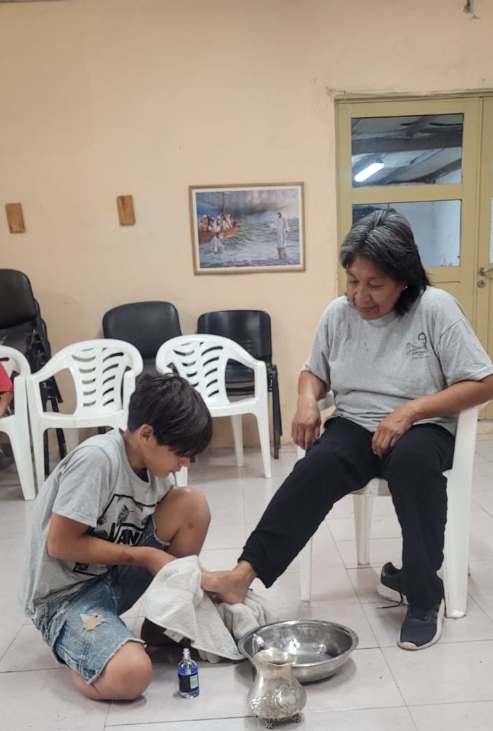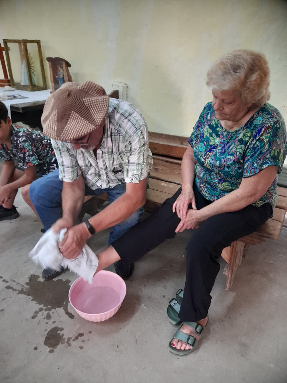 Este día celebramos la Cena del Señor poniendo el énfasis en lo que nos marca la iglesia: el amor fraterno, la Cena compartida (Eucaristía) que el Señor nos dejó como legado y la creación de los ministerios de servicio a la comunidad (presbíteros, diáconos, etc.). Como está prescrito en una sola celebración eucarística en la tarde, que realizamos al Aire Libre (Antártida/ Carriego) y por suerte el clima nos respetó se juntó toda la comunidad de comunidades para celebrar este gran legado de su Amor hasta el extremo.