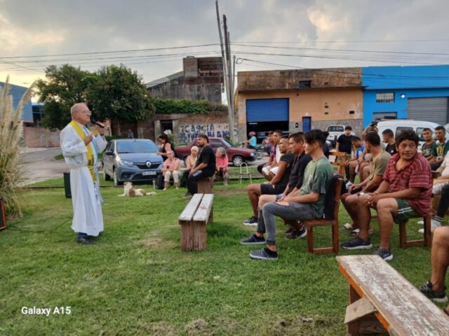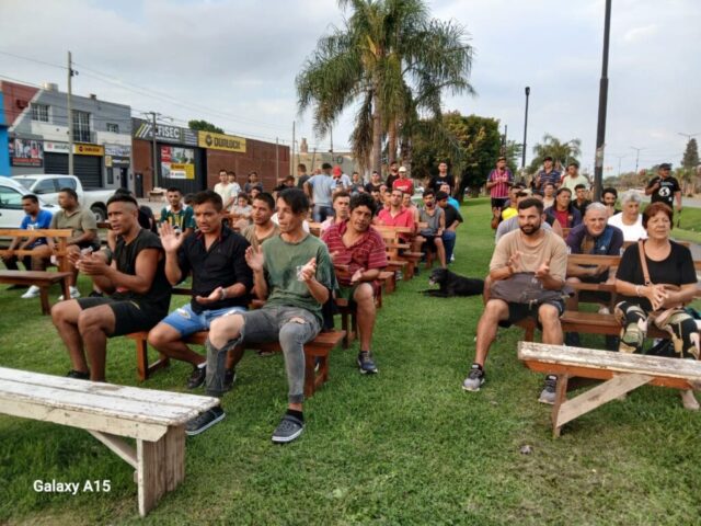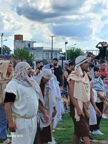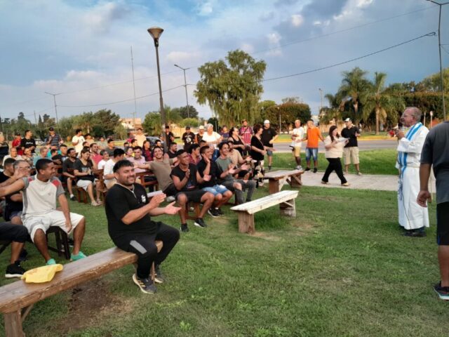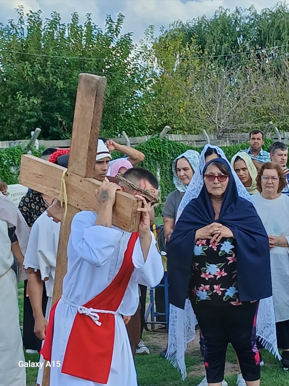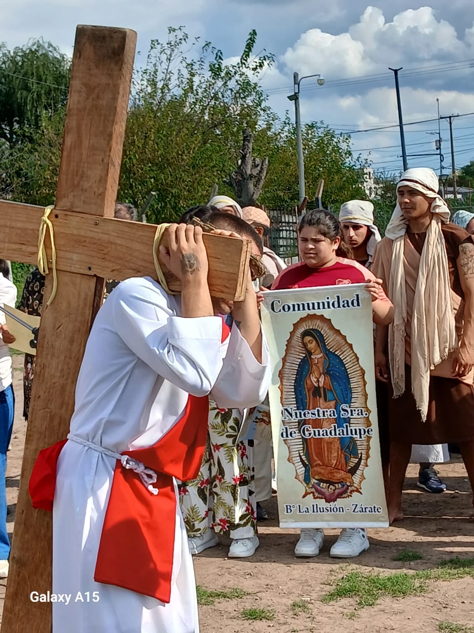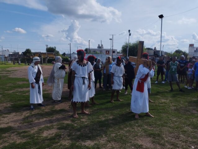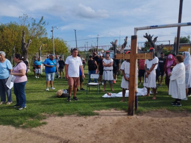 Nos juntamos a las 15 horas en el Predio del Club municipal Mitre (French y Av Perú) para hacer un Viacrucis en Vivo, contando con el apoyo de los jóvenes de nuestros Hogares de Cristo en Campana (María Auxiliadora y Cura Brochero). Con las representaciones de ellos fuimos acompañando a Jesús por nueve estaciones como se había programado. Y además en cada una de ellas, hicimos memoria y actualización de otras tantas cruces de nuestros días, reafirmando así nuestro compromiso por BAJAR DE LA CRUZ A LOS CRUCIFICADOS/AS DE HOY Y DE LA HISTORIA. Las estaciones fueron: 1/ CONDENA> Baja edad imputabilidad, 2/ CARGAR CON LA CRUZ> Dificultades encontrar trabajo, 3/ CAÍDA> Crueldad, maltrato, violencia, 4/ ENCUENTRA MUJERES> Violencia de Género, 5/ CIRENEO> Trabajo, Changas, Reforma Lab. 6/ VERÓNICA> Abandono, Soledad, Abuelos, 7/ DESPOJO VESTIDOS> Lo que nos Quitan, Derechos, Salud, 8/ ENCUENTRA MADRE> Mujeres que sostienen y unen la familia y la comunidad y 9/ MUERTE> Guerras, Pena Capital, Suicidio.