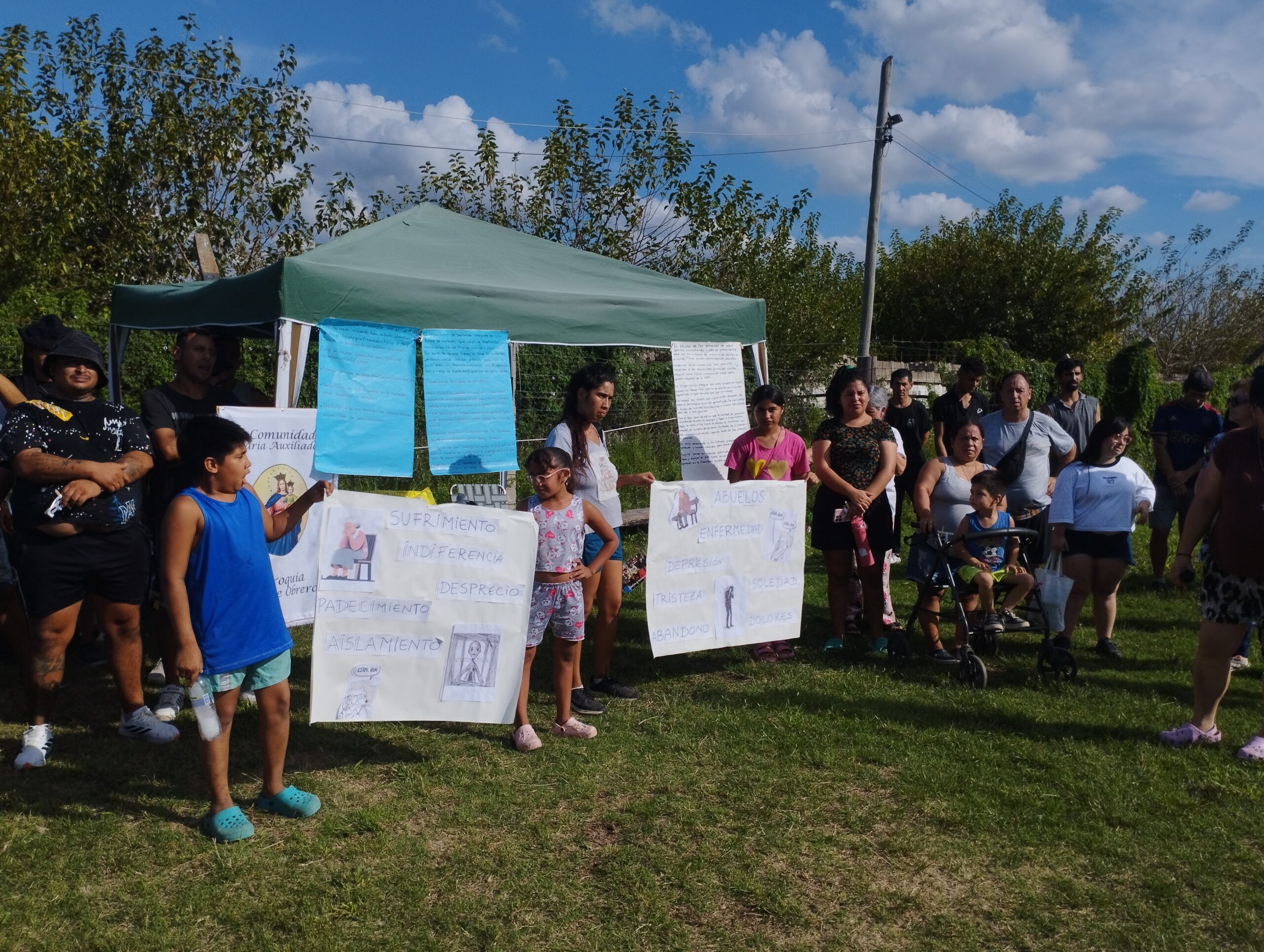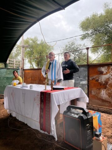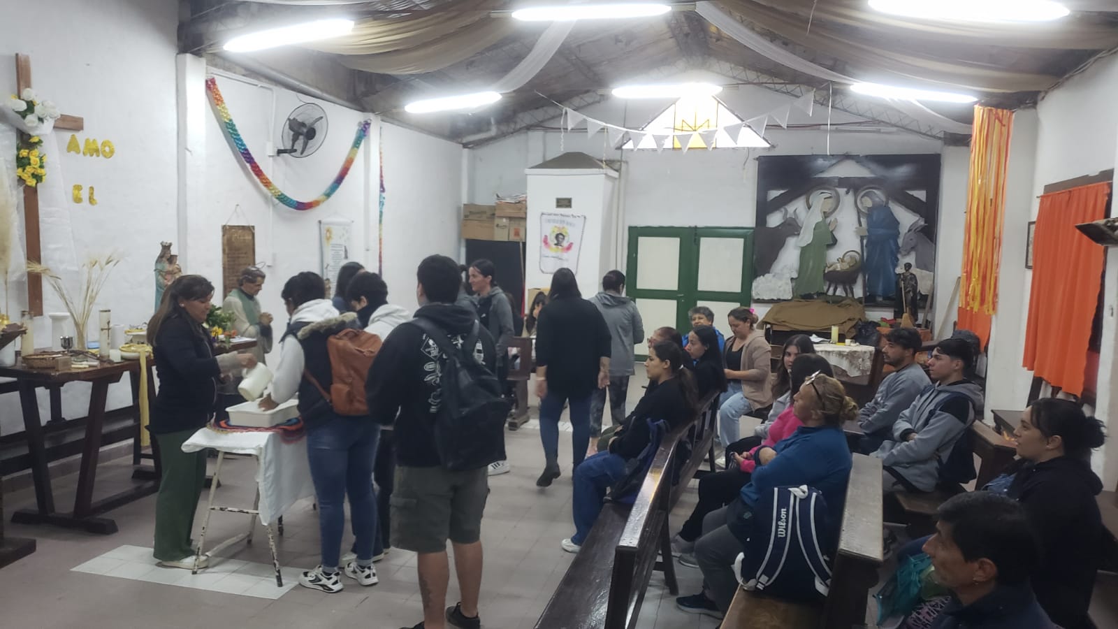 A la mañana siguiente a las 10 h. estaba prevista la Celebración de la Misa de Pascua simultáneamente en 2 lugares extremos de nuestro territorio: por un lado, en la Casa (Hogar de Cristo) Virgen de Luján en Mitre al 4000, Barrio Nuevo, se hicieron presentes para acompañar miembros de las comunidades M. Auxiliadora, Don Bosco, San José y S. Fco Sales; por otro lado, en Reysol, en la Casa Mamá Margarita acompañaron las comunidades de S. Juan Bautista, S. Alfonso y Virgen de Guadalupe.
