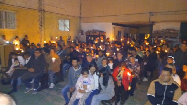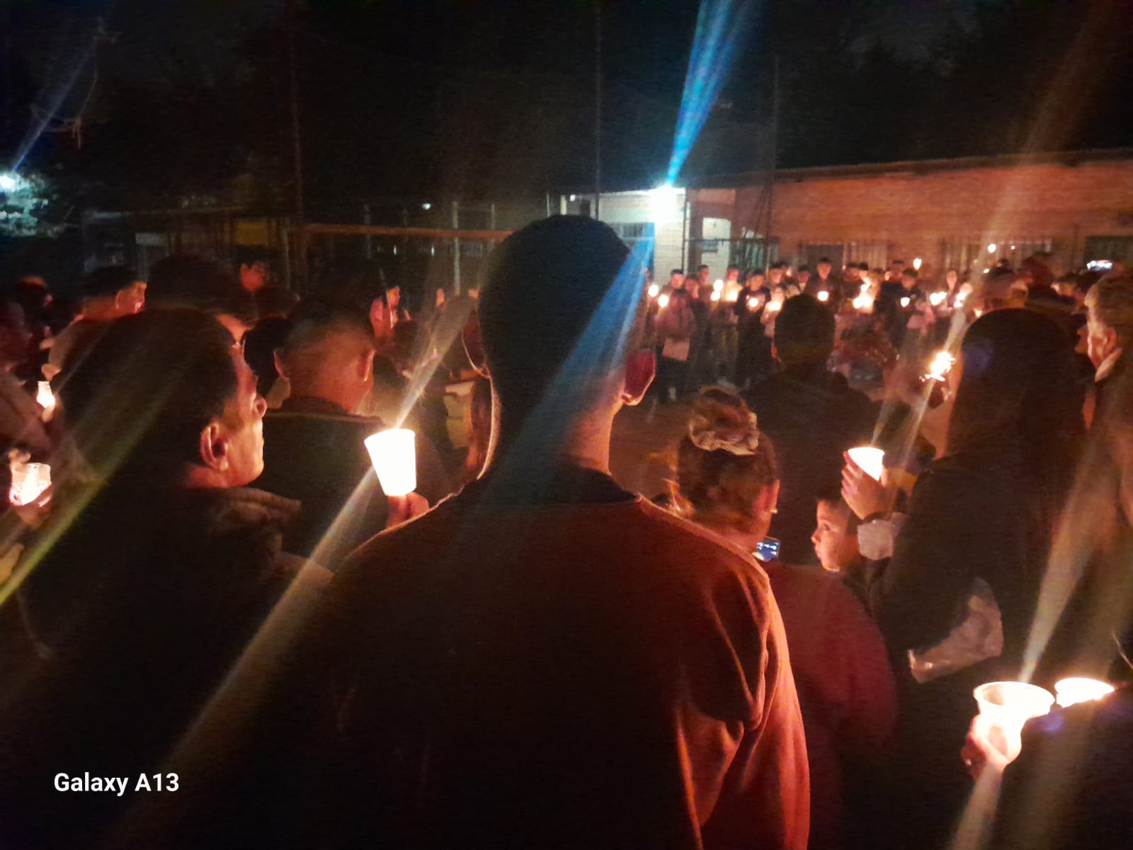 El siguiente momento importante que vivimos en esta semana grande fue la Vigilia Pascual en la tarde noche del sábado. Como hace todo el pueblo cristiano a lo largo y ancho del planeta, EN ESTA NOCHE, celebramos que JESÚS RESUCITÓ Y ESTÁ VIVO para que también nosotros recibamos una nueva vida en él. En una preciosa celebración en el SUM Don Bosco comenzamos ya de no0che con el Rito del fuego y encendido de los 7 Cirios Pascuales de nuestra comunidades y después del canto del Gloria escuchamos la Palabra de Dios y explotamos cantando el Pregón: PORQUE LO BUSCAN ENTRE LOS MUERTOS, SI ALLÍ NO ESTÁ.