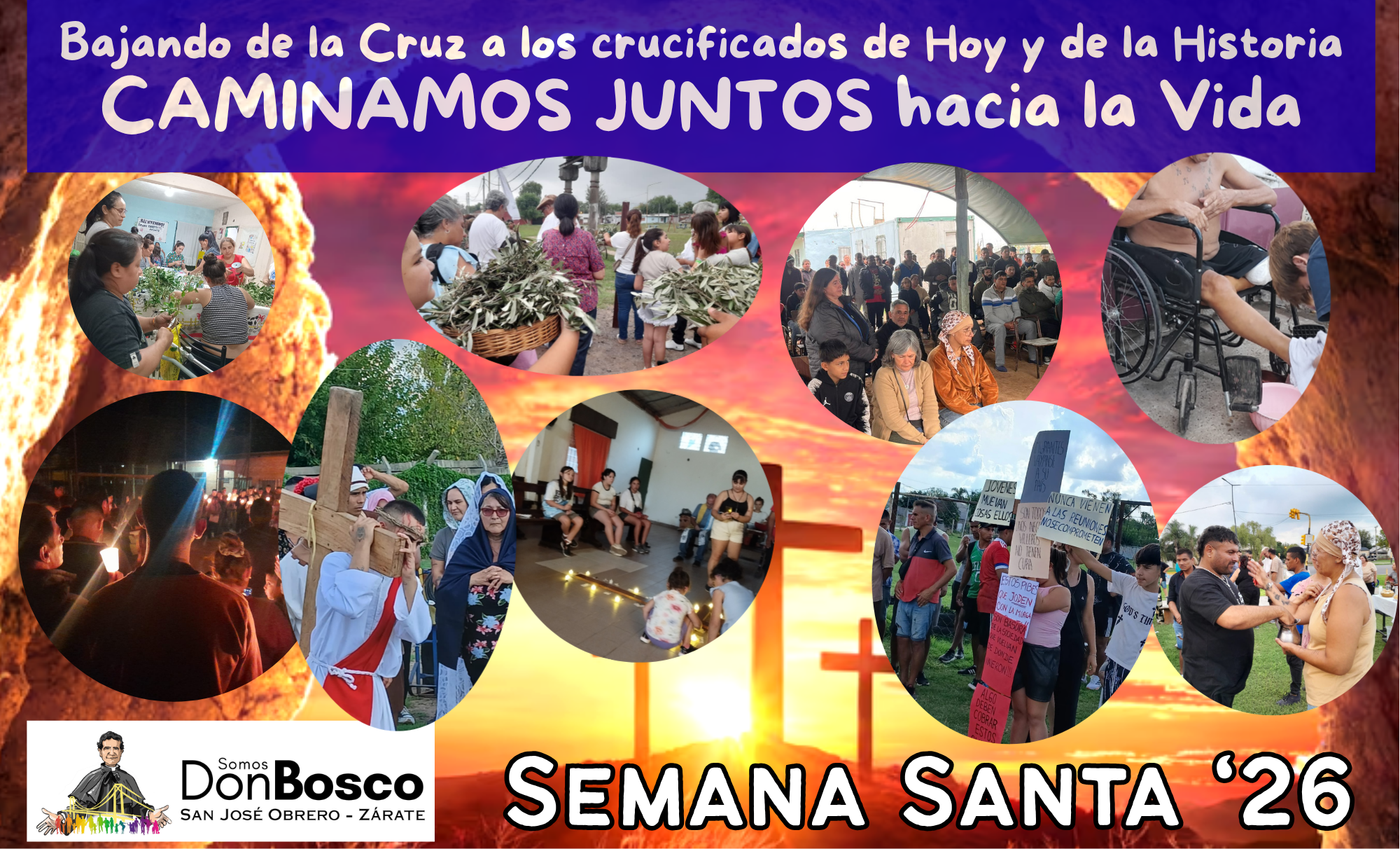 En esta entrada queremos resumir lo que fue la Semana Santa de 2026 en nuestra parroquia S. José Obrero de Zárate. Con el planeamiento pastoral de estos últimos años, queremos ayudar a nuestras hermanas y hermanos a VIVIR personalmente cada uno de los días y momentos de esta última semana de Jesús y que es tan significativa para arraigar nuestra fe viva en la Pascua de Jesús. Toda la semana y nuestra motivación estaba enmarcada en el eslogan de encima de estas líneas.