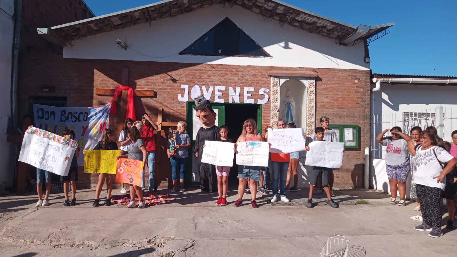 Llegamos así al Domingo de Pascua en que se habían programado dos eucaristías a las 10 hr. en Barrio Reysol y Barrio Nuevo, 2 fronteras de nuestro territorio parroquial donde todavía no se han generado comunidad como tal pero ya se realizan Hogares de Cristo (Mamá Margarita y Virgen de Luján), Oratorios y Espacios Socioeducativos con los menores. En cada una de estas misas terminamos rompiendo y compartiendo una gran Huevo de Pascua con todos los que acudieron. Creo que celebrar la Semana Santa de esta manera ayuda a sentir que todos somos comunidad, que caminamos juntos para seguir bajando de tantas cruces a tantos hermanos nuestros y para construir aquí su Reino de hermandad.